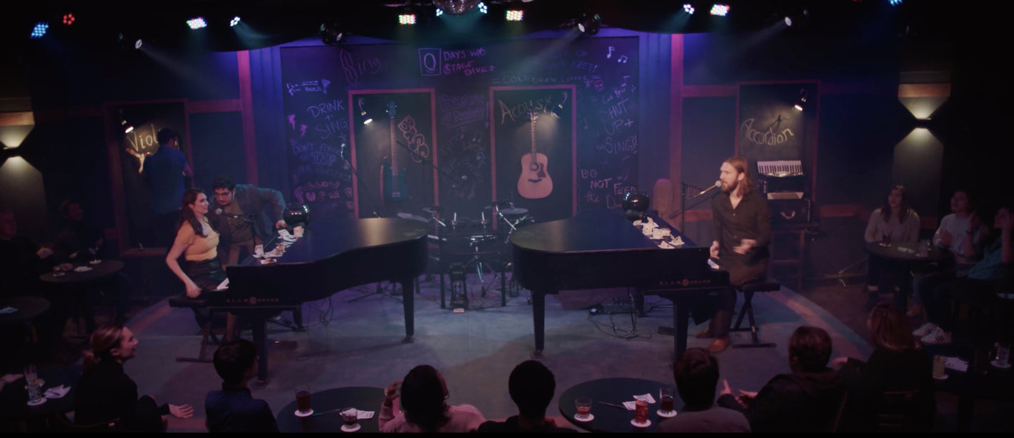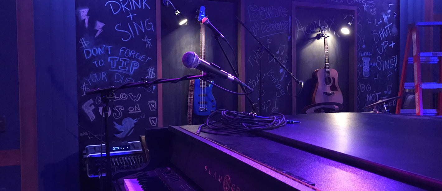 The Duelers bar logo was designed and carved into the wall above the bar by our crazy talented Production Designer, Joey Ostrander. All of the chalkboard doodles were scribbled by the cast, crew, and interns during the production of Duelers. Thank you Ann Arbor T-shirt Company for bringing this design to life!