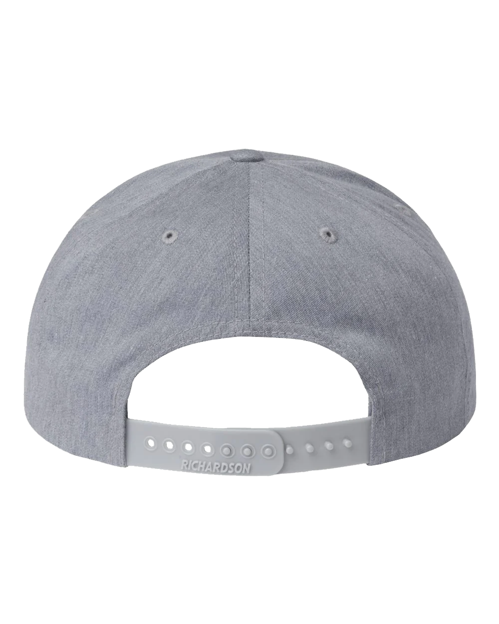 A pinch front five-paneled trucker cap with a flat bill in heather grey, featuring a tone on tone raised embroidery Duelers logo. 60/40 Cotton/polyester.